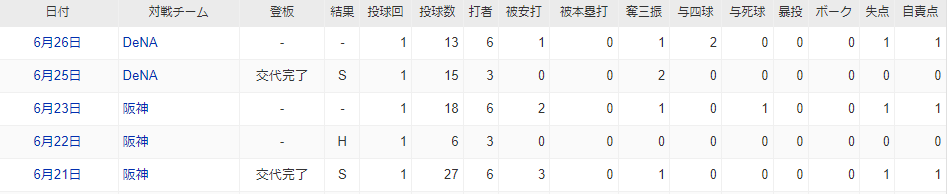 6日間で5登板と頑張ってくれております。