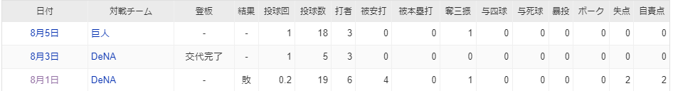 その後の登板では2試合無失点リリーフとしております。