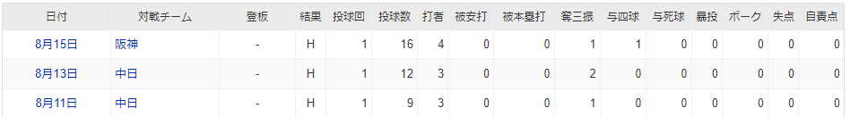 8/1こそ失点しましたがそこから5試合連続無失点としっかり切り替えて投げれてますね。