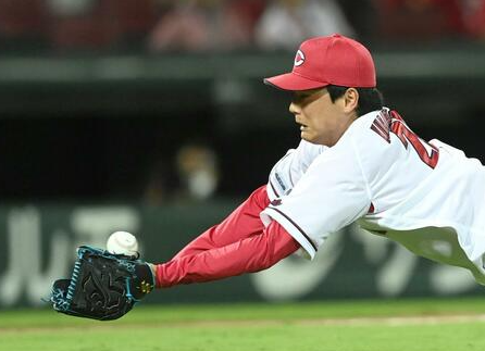 惜しくも捕球できませんでしたが、一塁走者を二塁で封殺。