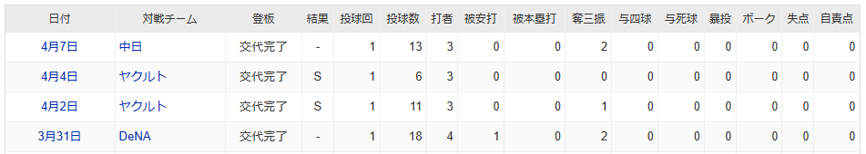 今年は開幕から手ごたえのある登板で4試合に登板して2セーブと順調な滑り出しとなりました。