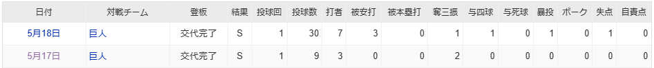 5/19の巨人戦では失点こそするも粘りのピッチングで3連勝締めと踏ん張ってくれました。
